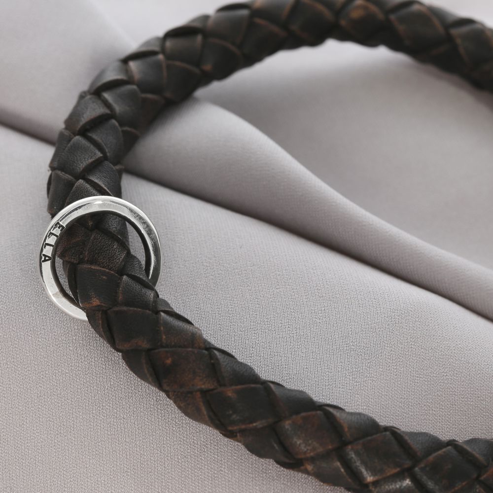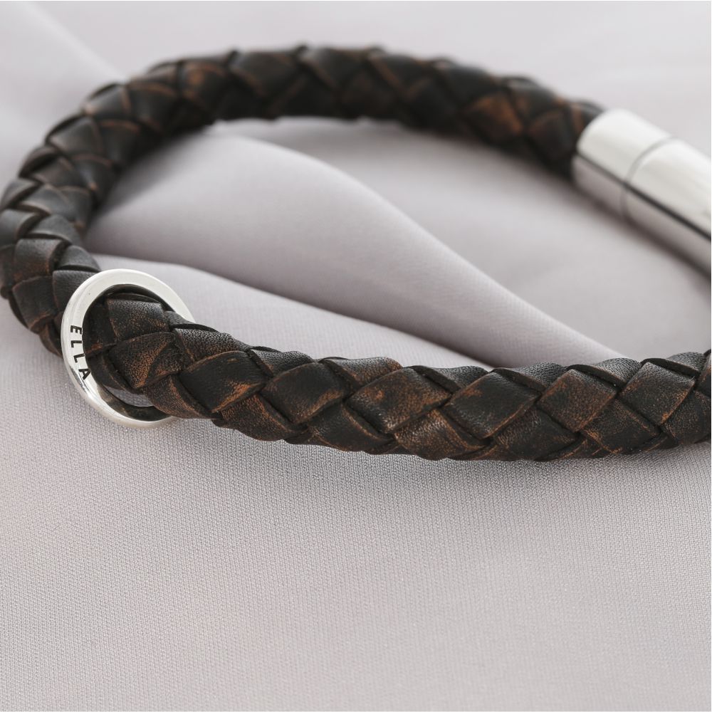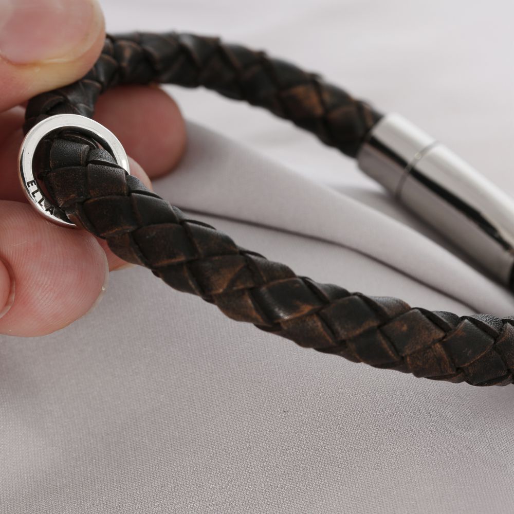 Ein schönes, stabiles Lederarmband aus geflochtenem Leder (8mm) mit Gravur. Nicht nur Schmuck, sondern Schmuck mit Botschaft. Es können Namen, Text oder Koordinaten etc. graviert werden.