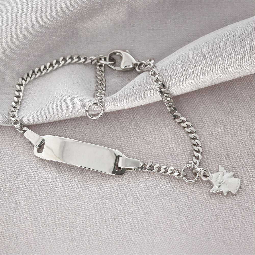 Das ID Kinderarmband kann sowohl von Kindern als auch von Babys getragen werden. Babys sollten niemals unbeafsichtigt mit Schmuck gelassen werden. Das ID Armband für Babys und Kinder hat eine Länge von 14 cm. Bei 12 cm Länge ist eine Zwischenöse eingearbeitet, damit man das Kinderarmband auch um Baby Arm umbinden kann.
