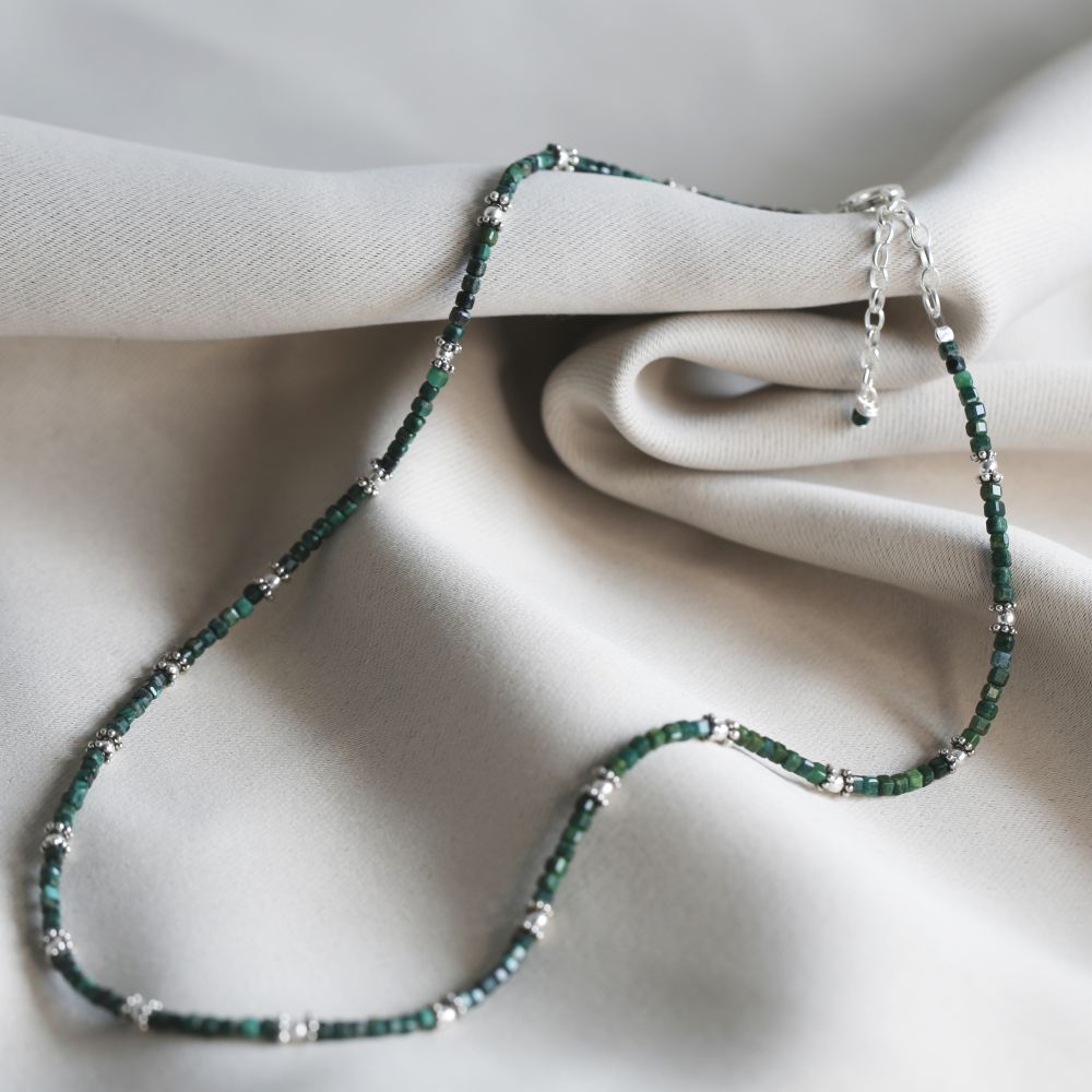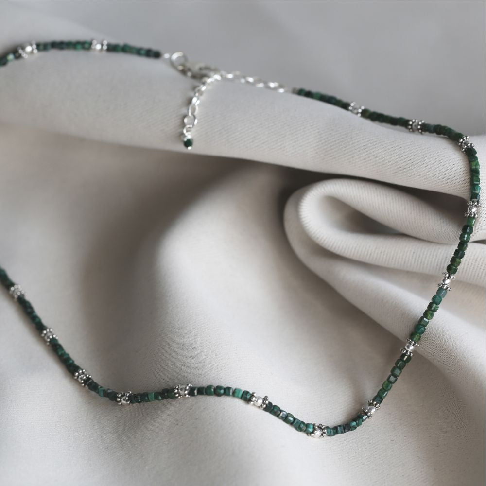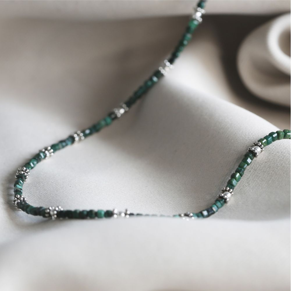 Eine tolle Halskette mit kleinen Naturstein Perlen aus Malachit und 925 Silber