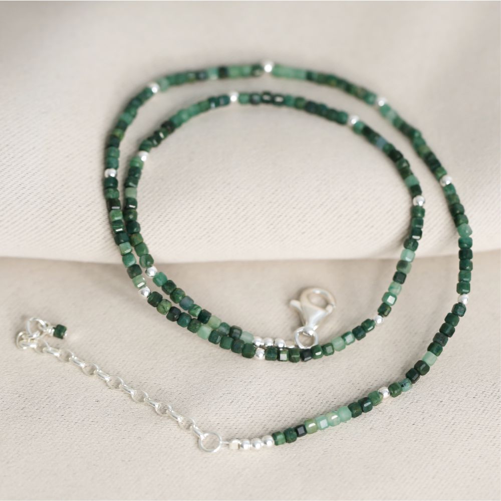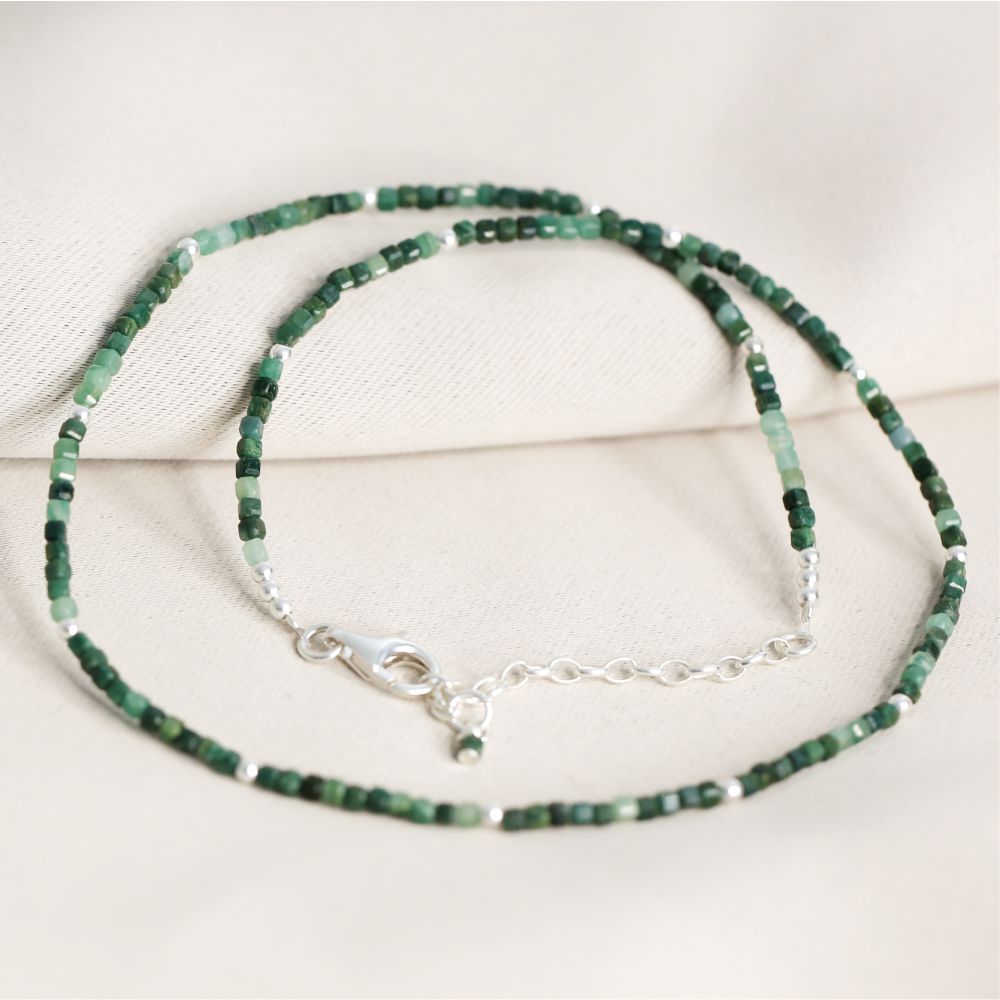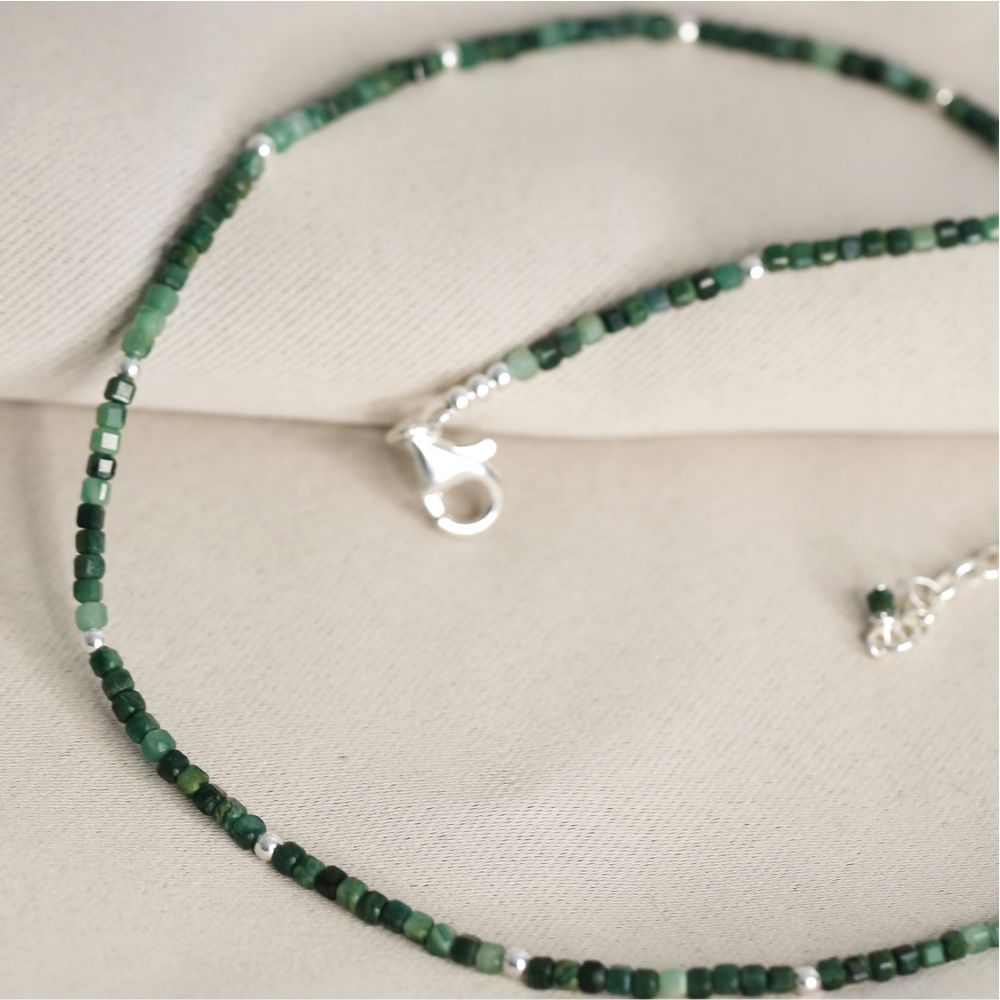 Eine tolle Halskette mit kleinen Naturstein Perlen aus Jade und 925 Silber
