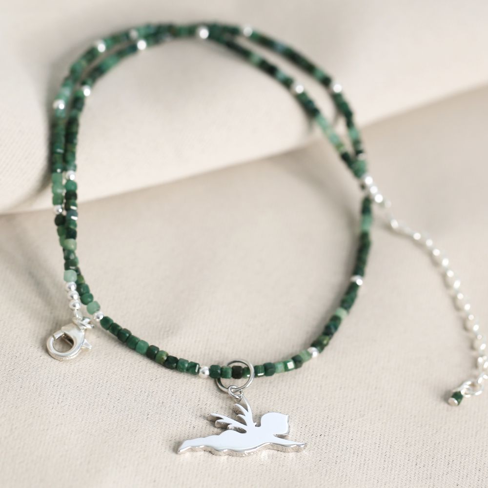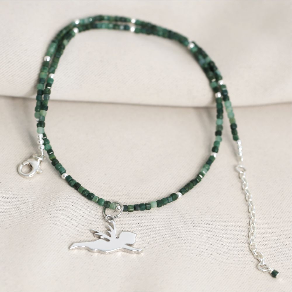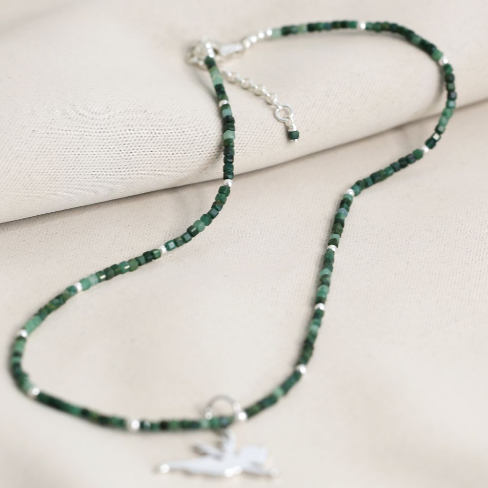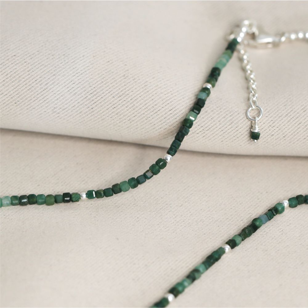 Eine tolle Halskette mit kleinen Naturstein Perlen aus Jade und 925 Silber