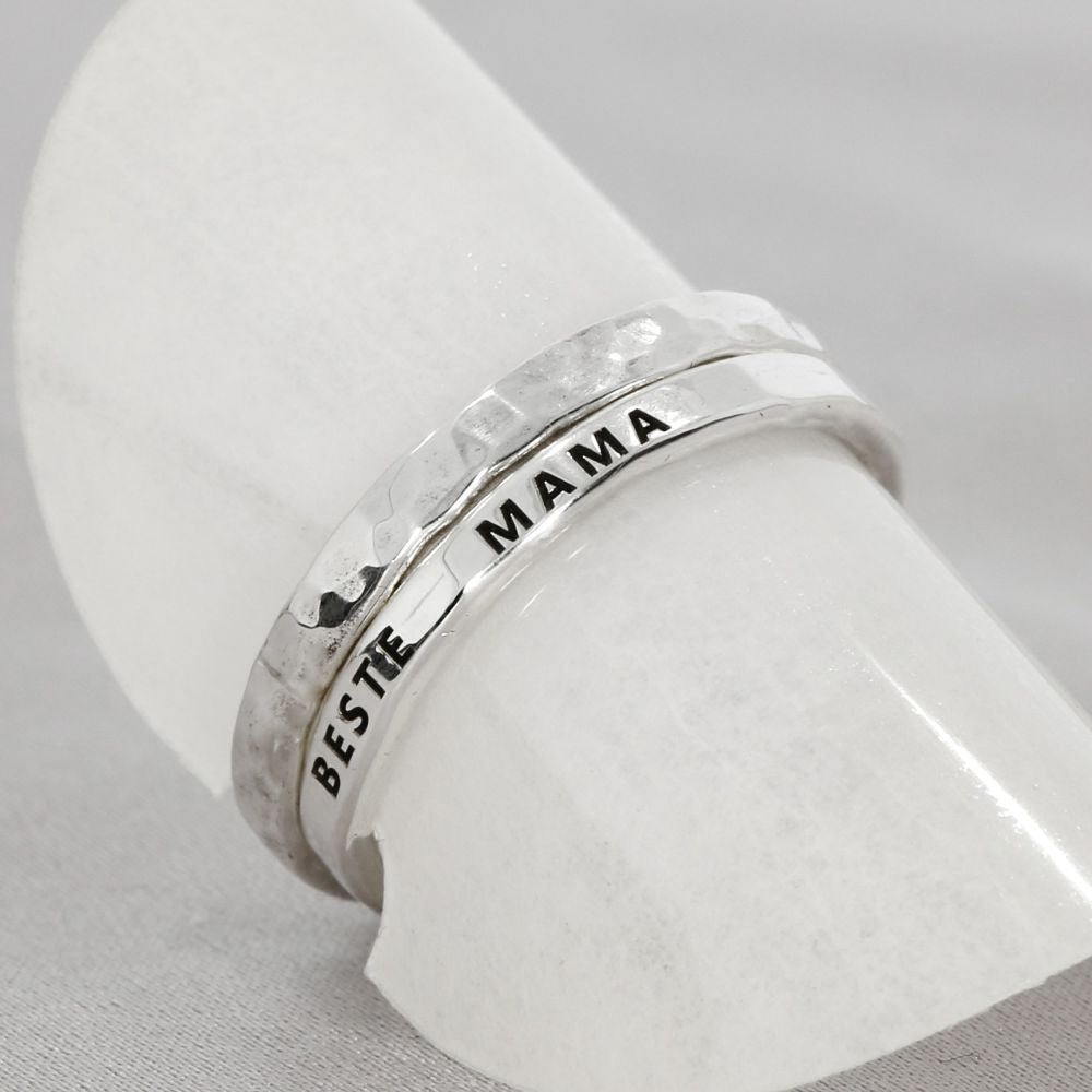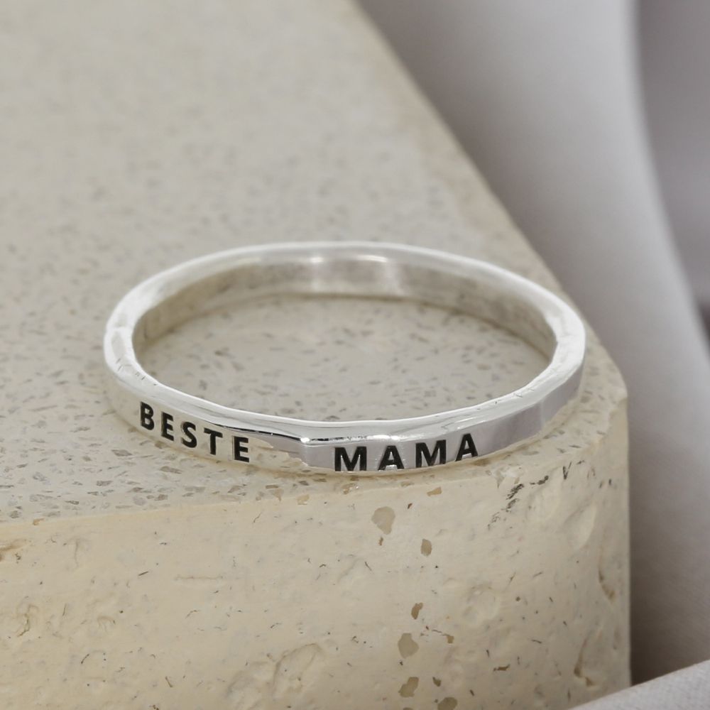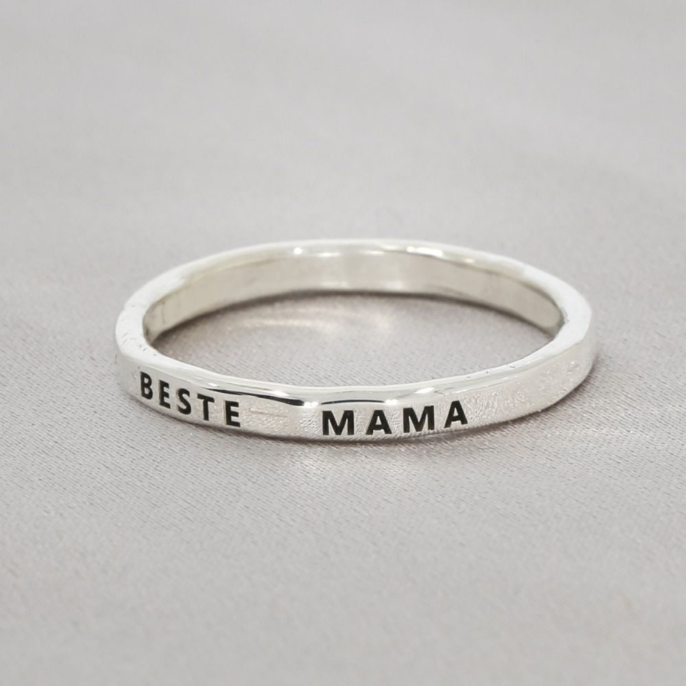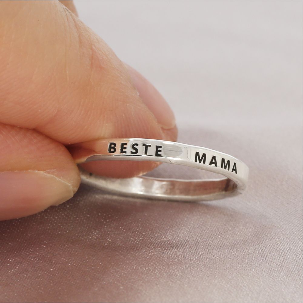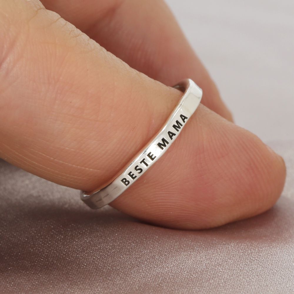 Ein schöner, schlichter Fingerring aus massivem 925 Silber mit Gravur aussen. Die Gravur machen wir immer nur in Großbuchstaben, damit die Schrift auch gut lesbat ist. Diese ist dann etwa 1-1,5mm groß.