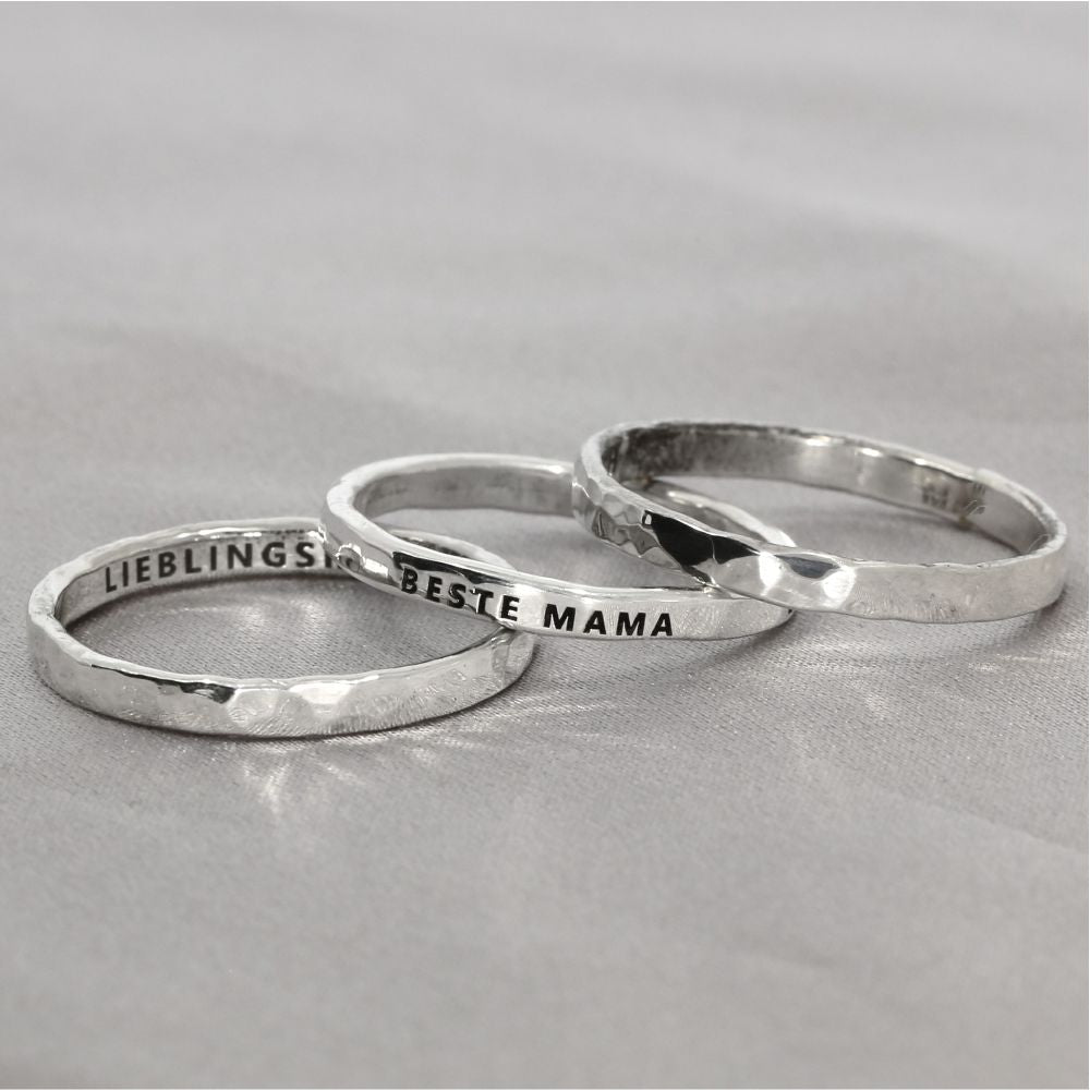 Die Oberfläche bei dem Ring ist gehämmert und poliert und dadurch schön glänzend.